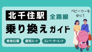 北千住駅北千住駅の全路線!乗り換え最短・エレベータールートと便利な乗車位置まとめ 東京都にある北千住駅での乗り換え最短ルートとエレベータールートをご紹介します。北千住駅に乗り入れる全路線(千代田線、常磐線快速、日比谷線、東武スカイツリーライン、つくばエクスプレス)同士の乗り換えルートをまとめました。エレベータールートは、ベビーカーを押して出かける際や大きな荷物がある際に、参考にして頂けます。 2025.11.11北千住駅